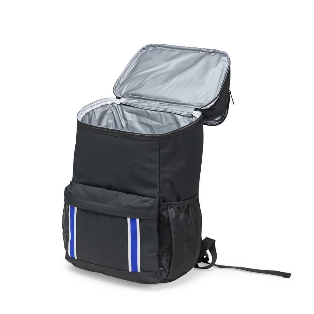 Alimentos e bebidas frescos e conservados por mais tempo com a nossa mochila térmica. Possui capacidade total para até 18 litros, tornando-a uma opção versátil para todas as ocasiões, desde eventos ao ar livre até atividades mais cotidianas. Feita em poliéster impermeável com revestimento interno em PEVA atóxico, que possui propriedades contra vazamentos, ela garante proteção completa para um aproveitamento pleno de suas capacidades sem quaisquer tipo de preocupações. A mochila térmica ainda traz um bolso superior na parte externa que também apresenta revestimento em PEVA atóxico, com capacidade de aproximadamente 1,5 litros, ideal para carregar objetos menores como potes plástico com frios, por exemplo. Além disso, ela conta também com um bolso frontal que pode ser usado para carregar itens como talheres e guardanapos além de outros dois bolsos laterais em tela.